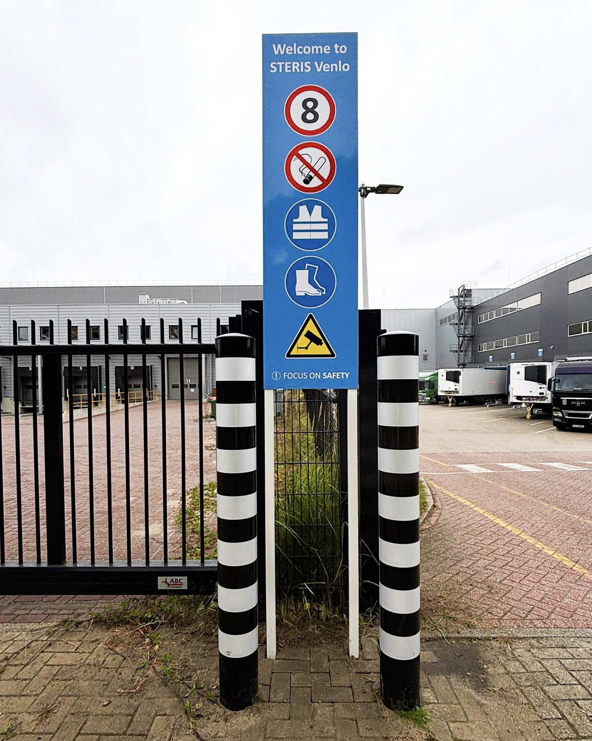 Zuil van 3,5 meter hoog, optimaal zichtbaar voor vrachtwagenchauffeurs.